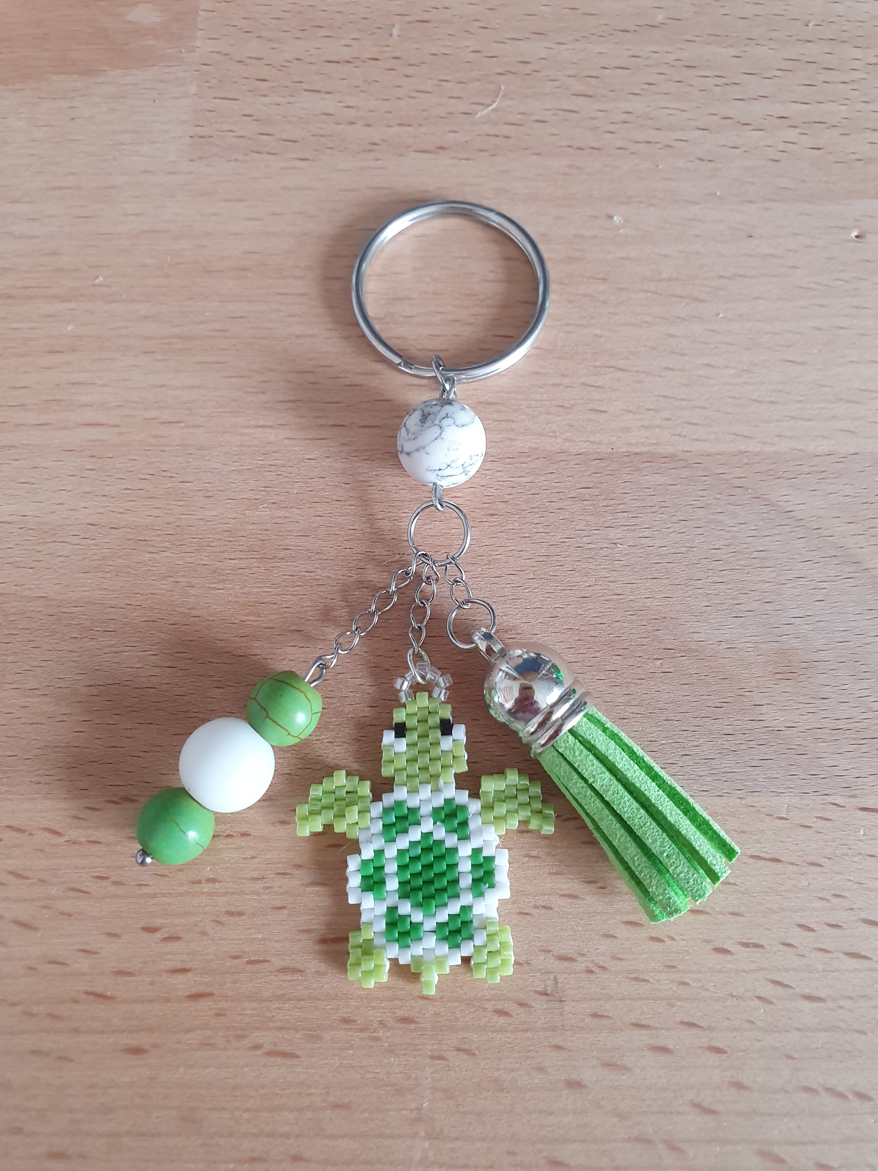 Bijoux de sac pompon perles tortue verte tissage perles miyuki