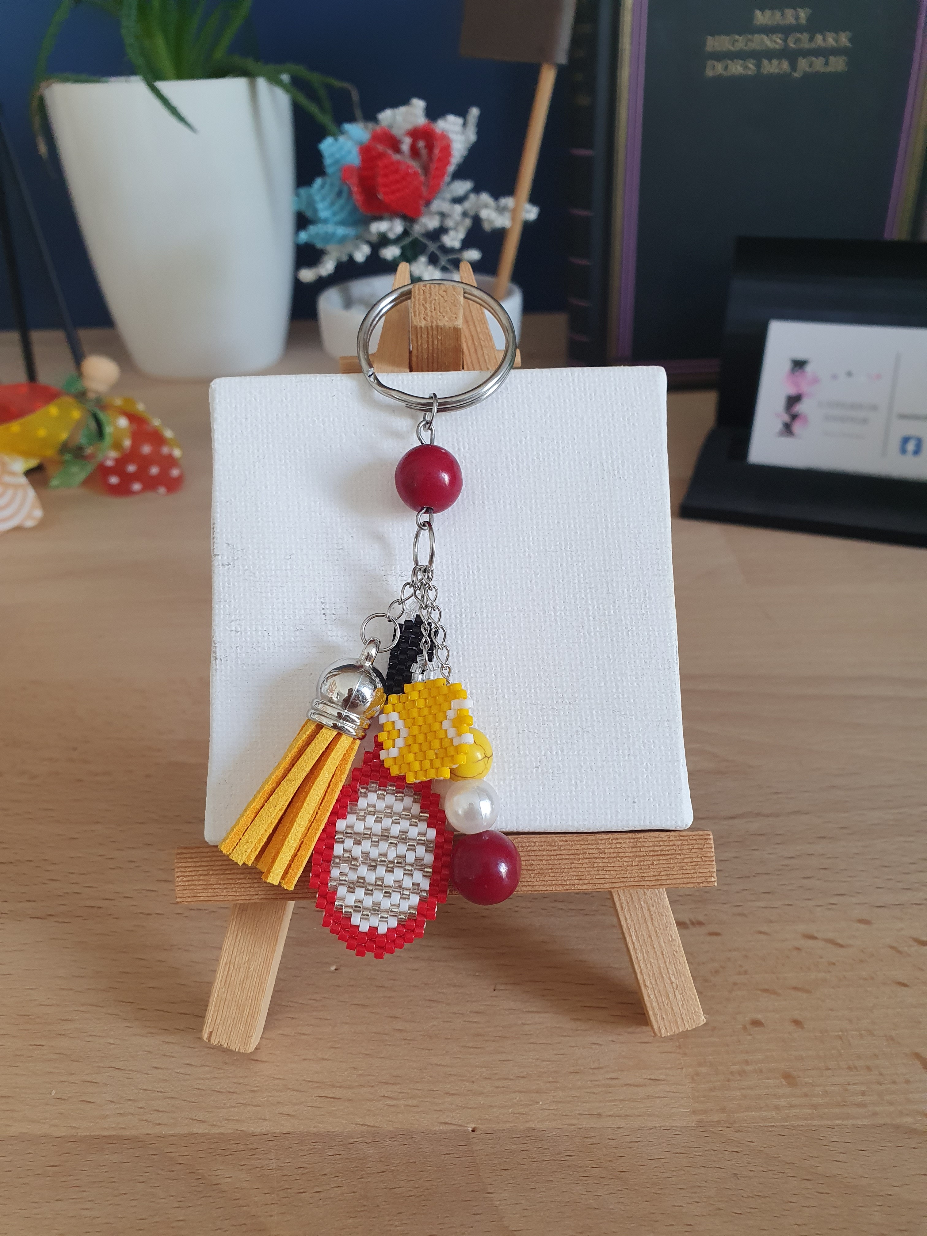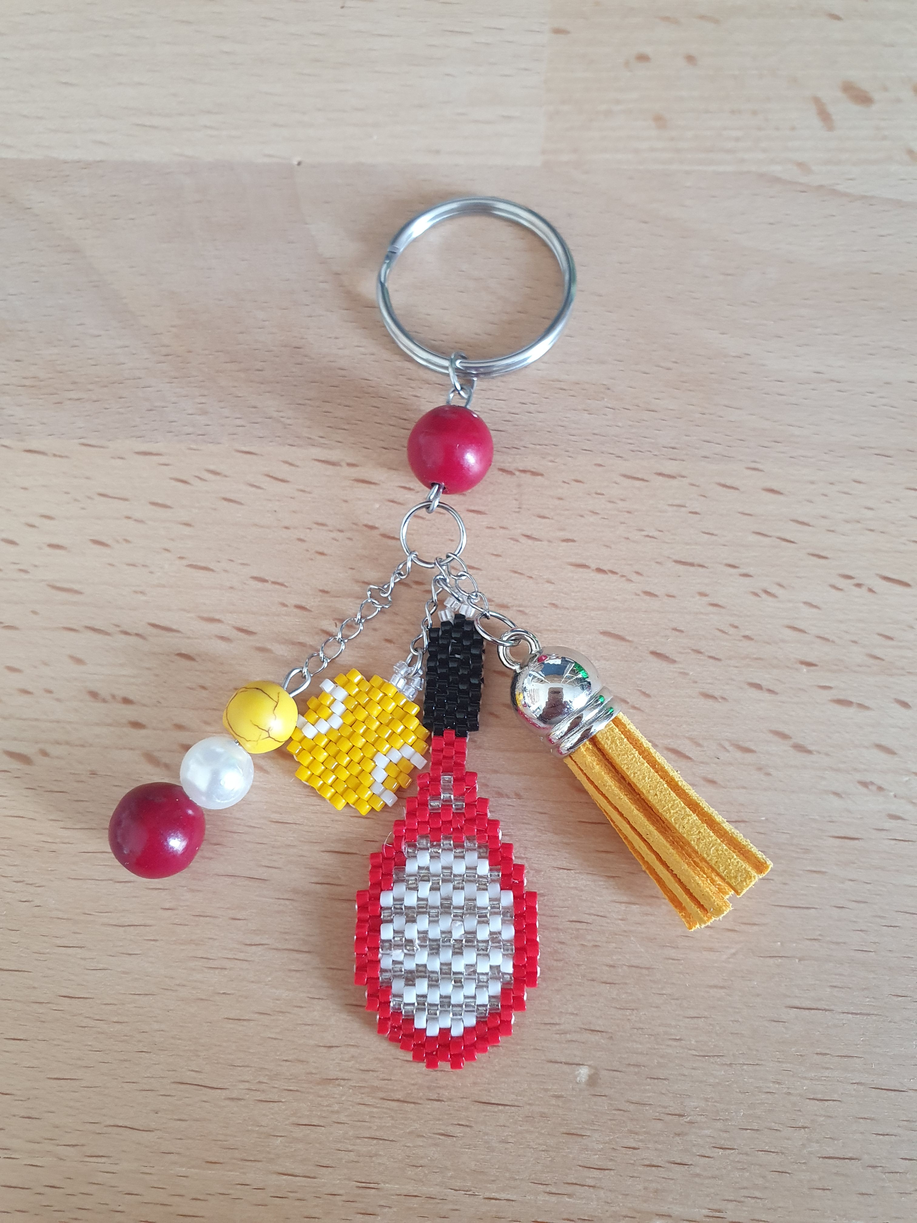Ce porte clé est un accessoire idéal pour personnaliser vos clés, vos sacs, ... Il est confectionné avec soin, ce qui rend chaque pièce unique et apporte une touche personnelle et artisanale à votre quotidien