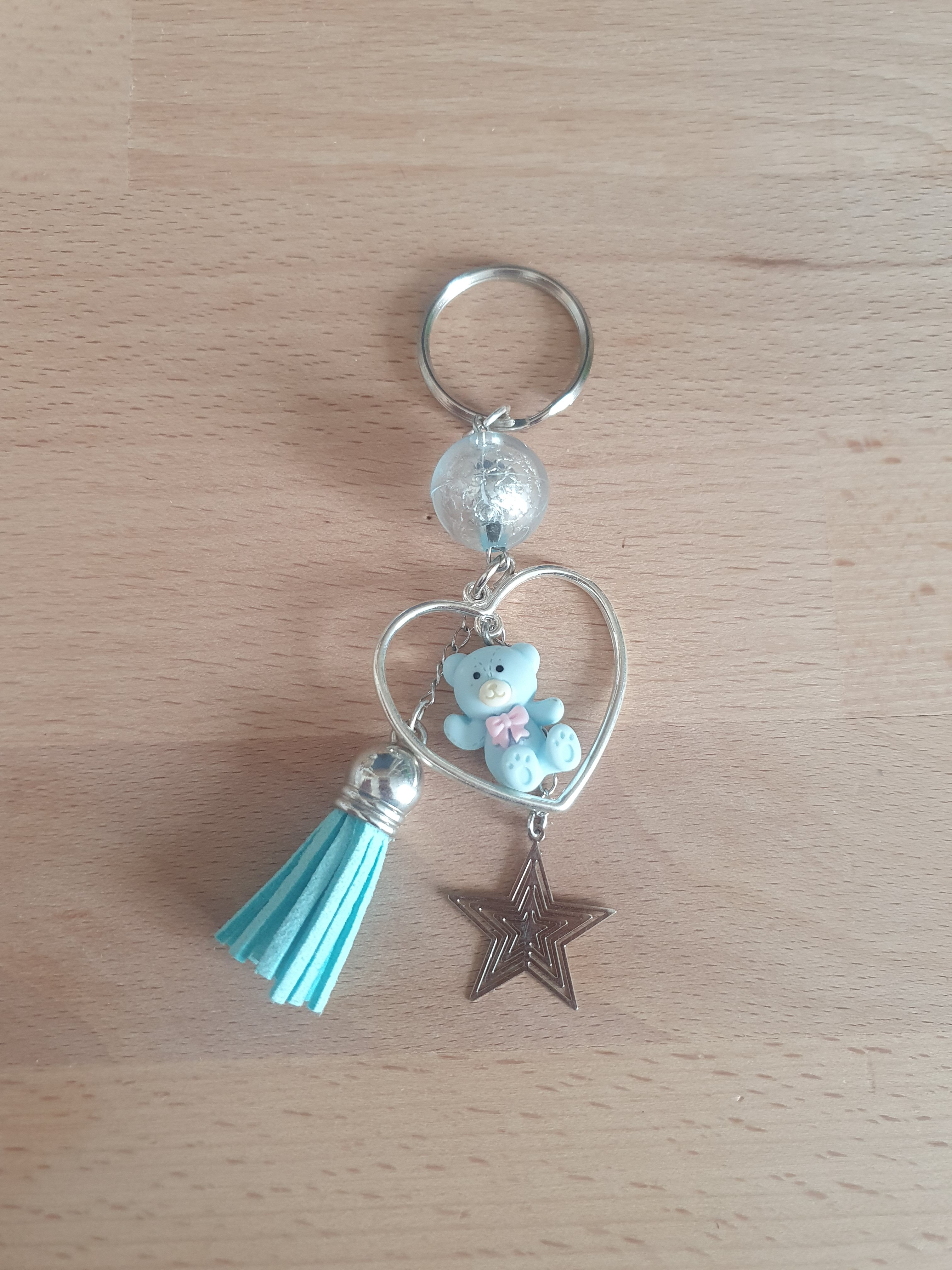 Bijoux de sac perles coeur pompon étoile ours bleu