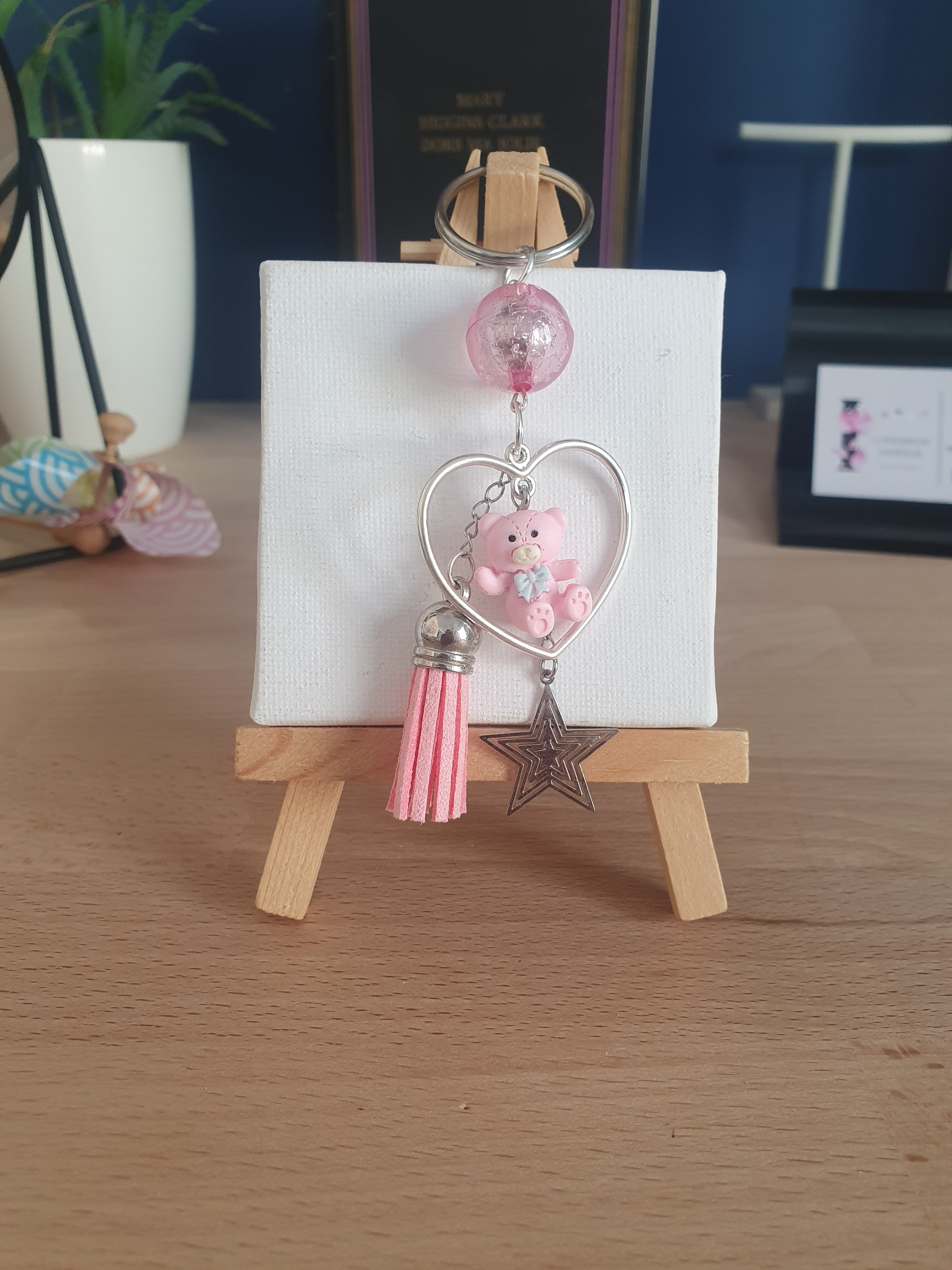 Composé d'une charmante breloque en forme de coeur, d'un petit ours trop craquant, d'un pompon suédine et d'une jolie étoile, il saura vous séduire à coup sûr.