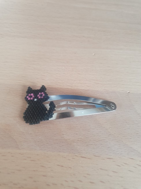 Cette jolie barrette avec son petit chat noir, entièrement tissé à la main avec des perles miyuki, est l’accessoire parfait pour ajouter une touche fun et élégante à votre tenue.