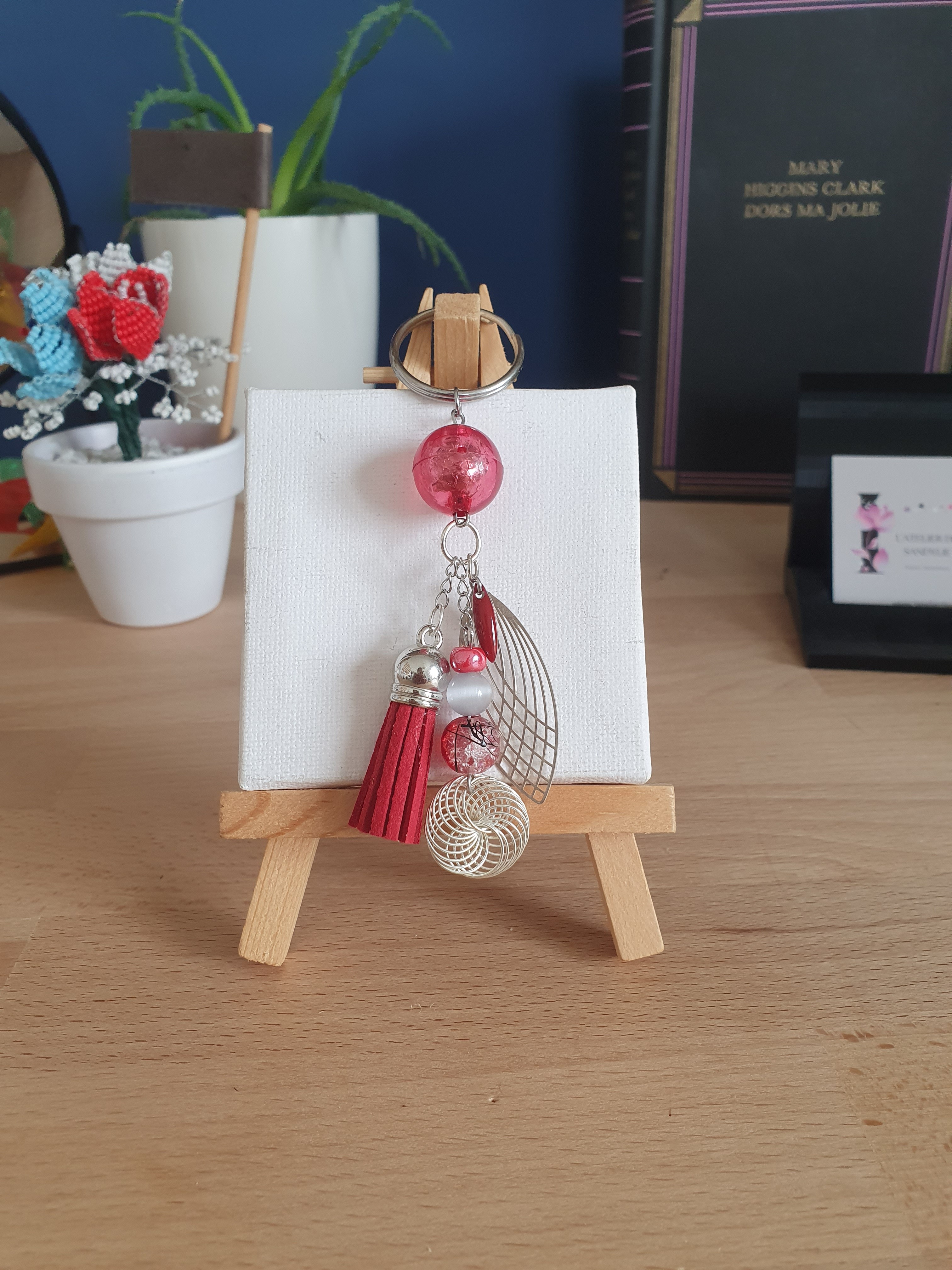 Ajoutez une touche de sophistication à vos sacs avec ce superbe bijoux de sac fait main, composé de perles, d'une élégante breloque et d'un pompon qui apportera du mouvement et de la texture à vos accessoires !