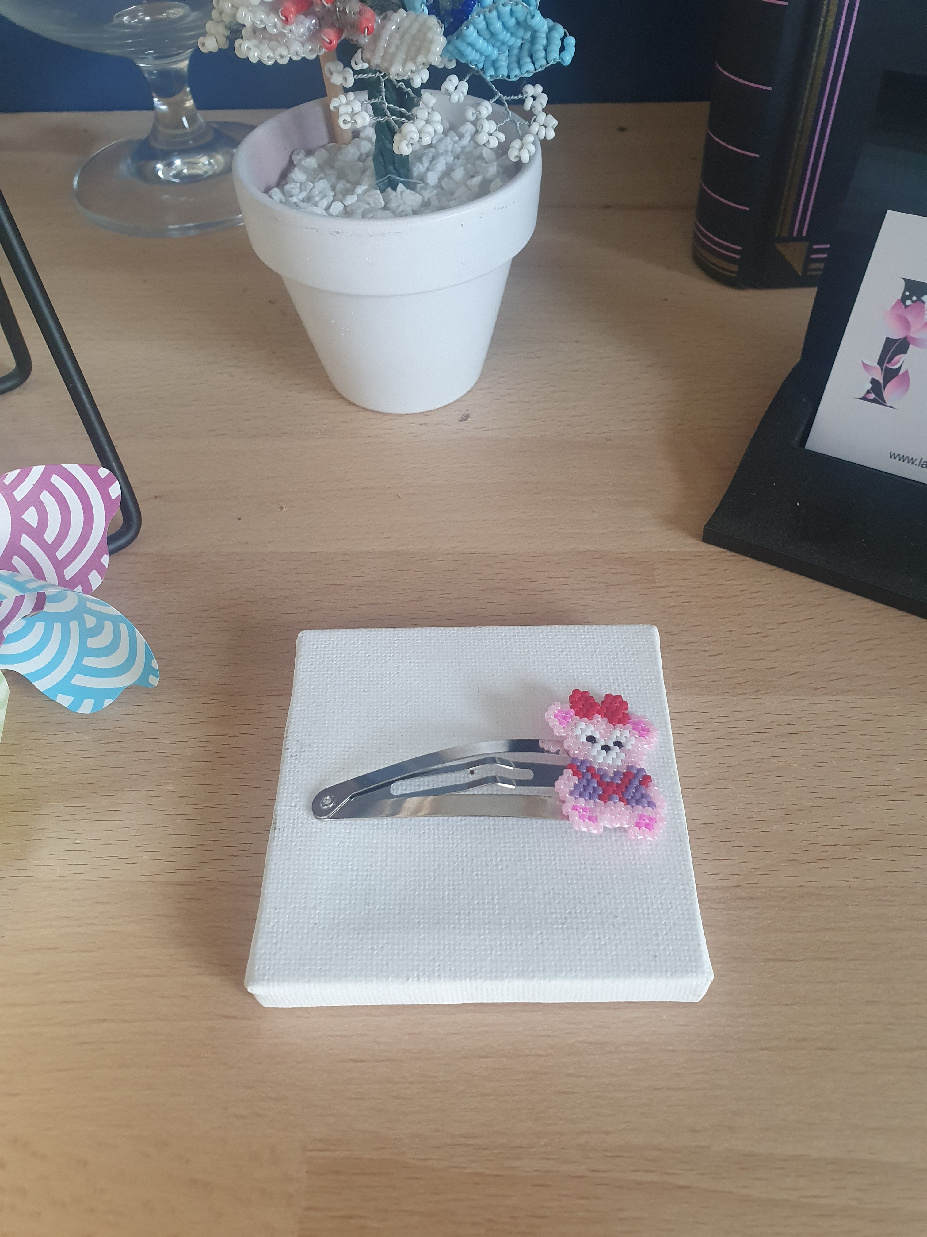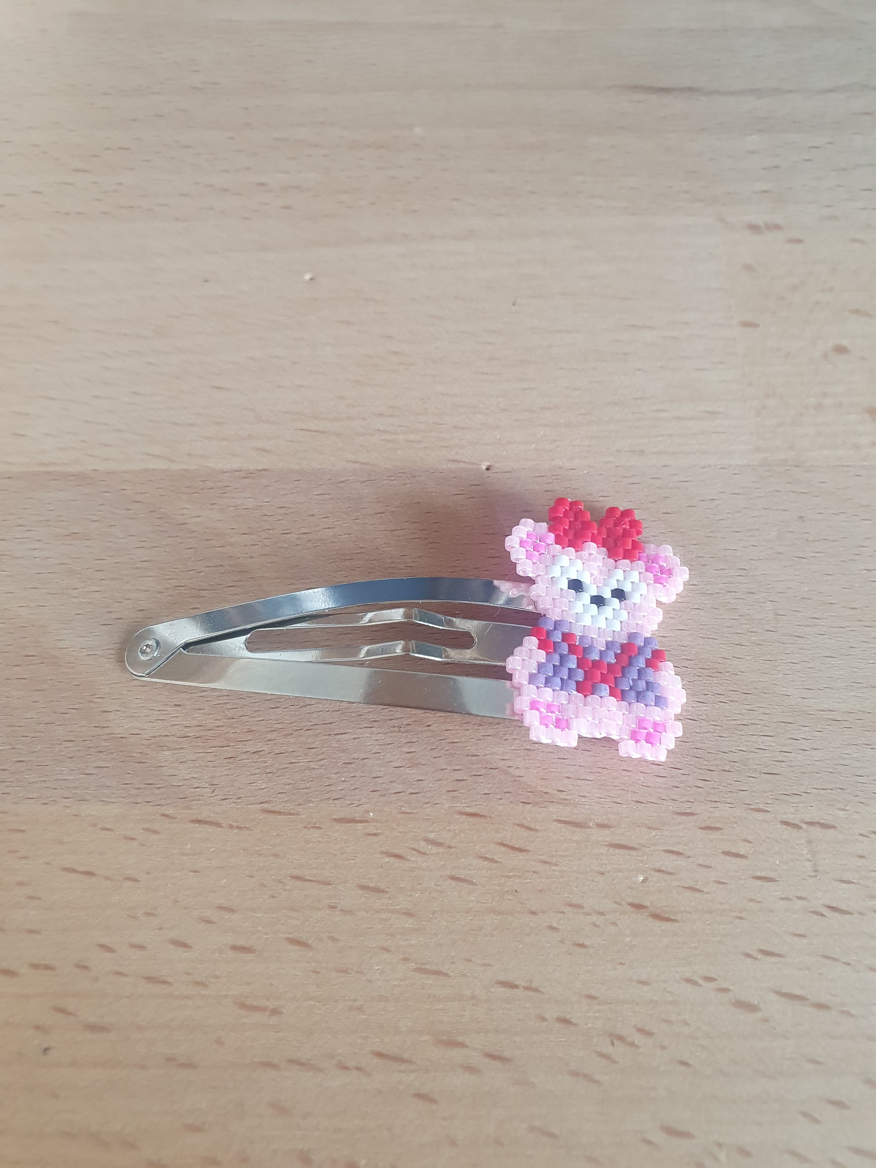 Craquez pour cette adorable barrette ourson rose, entièrement tissé à la main avec des perles miyuki.